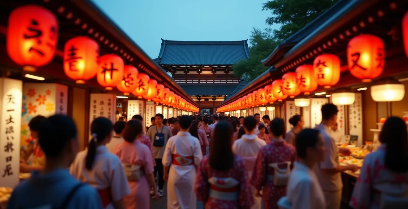 L’évocation d’un festival d’été japonais, ou matsuri, transporte immédiatement l’imaginaire. On se voit déambuler sous des milliers de lanternes en papier, vêtus d’un yukata coloré, une brochette de yakitori à la main, tandis que le ciel s’embrase sous les feux d’artifice (hanabi). Cette carte postale est séduisante, et beaucoup de voyageurs pensent qu’il suffit de se présenter pour la vivre. Ils cochent les cases : manger un takoyaki, tenter d’attraper un poisson rouge, poster une photo du feu d’artifice.